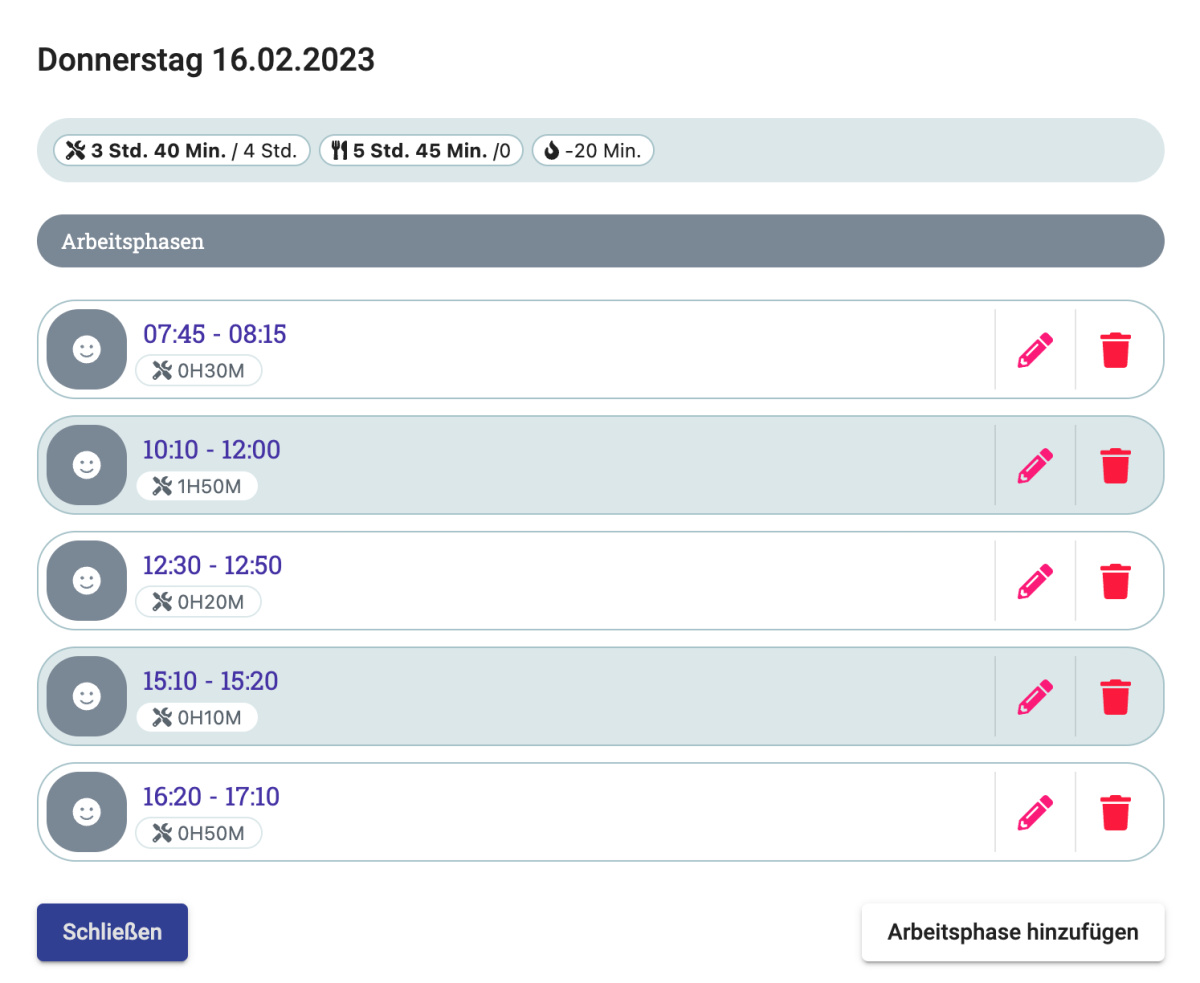 - Mit einem Klick auf "Arbeitsphase hinzufügen" kannst Du eine neue Arbeitsphase anlegen
